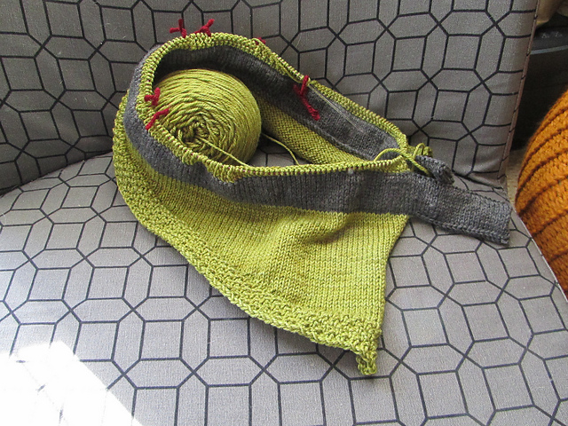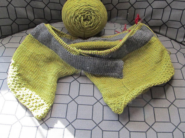 A few months ago, I won a yarn give-away hosted by Holla Knits. I won two skeins of Dirty Water DyeWorks Edna in Celery - a beautiful wool-silk blend of yarn in a lovely green color. I was trying to figure out how best to use it, and since I got it from Holla Knits, it only made sense to use a Holla Knits pattern!